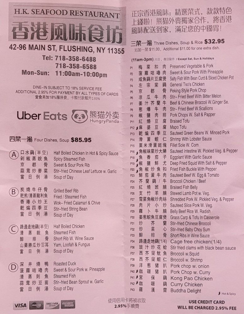 Overall, HK Seafood Restaurant 香港風味食坊 is a must-visit for seafood lovers in the Flushing area. With its diverse menu, convenient location, and accommodating amenities, this restaurant is sure to become a favorite spot for your next meal out.